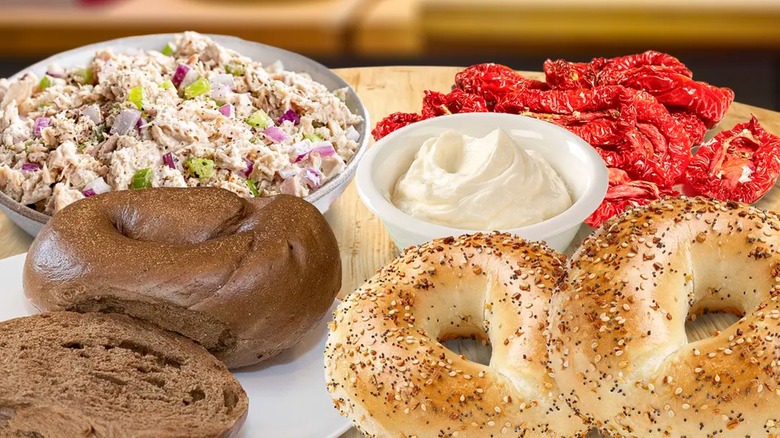 About his favorite pumpernickel pairings, Martensen says, "I mean honestly, almost anything, but all the salads really go well with the pumpernickel because it's got that rye flavor." Along with tuna, It's Bagels' salad menu includes a whitefish salad, egg salad, and chicken salad, too. Alternatively, we could see serving pumpernickel with vegetable cream cheese and a thick slice of tomato (when in season).