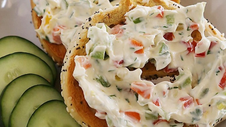 Onion bagel with vegetable cream cheese