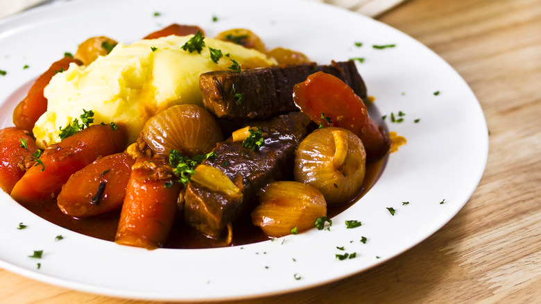 This process ensures the meat is packed with flavor and comes out with a rich, melt-in-your-mouth texture. If you order a boeuf bourguignon at a good French restaurant, you can't go wrong. If instead, you want to try your hand at making boeuf bourguignon at home, be ready to put aside an entire day for the project. Between all the chopping, preparation, braising, and stewing, it can be a lengthy process that requires some advanced cooking skills. But it's all well worth the wait.