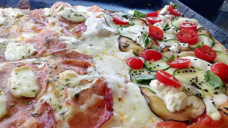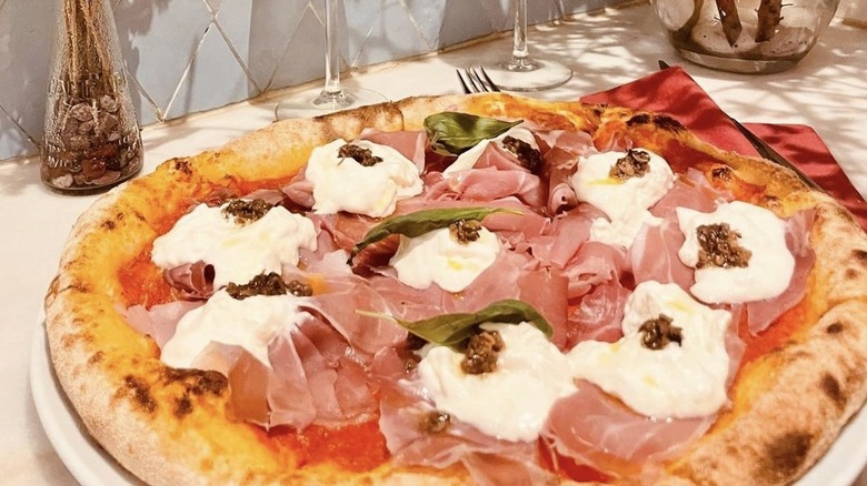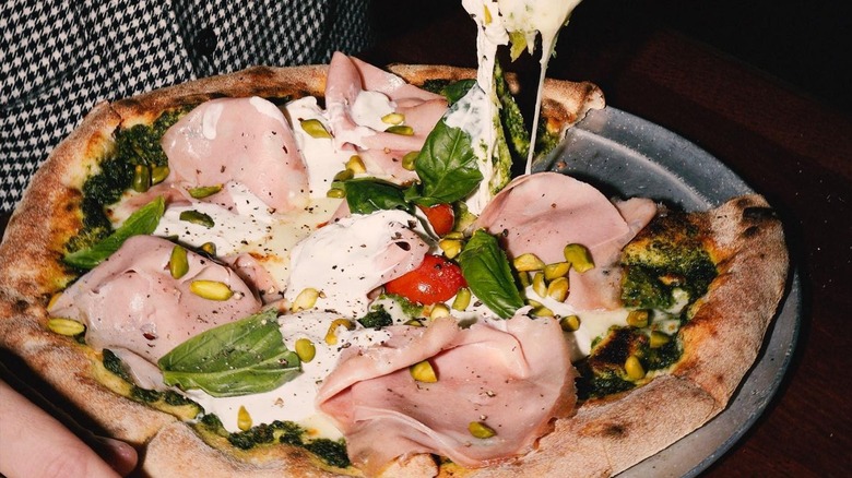 The pizza itself is Sicilian, but not the rectangular Sicilian-style pizza you might find in New York; in this case, it's round with a super crunchy crust. The menu is seemingly endless, with literally dozens of pizzas to choose from. One thing Retrogusto84 does especially well is vegetarian and vegan pizzas, many of which make use of creative sauces like pistachio pesto and truffle cream in place of cheese (though there's also plant-based mozzarella and burrata).