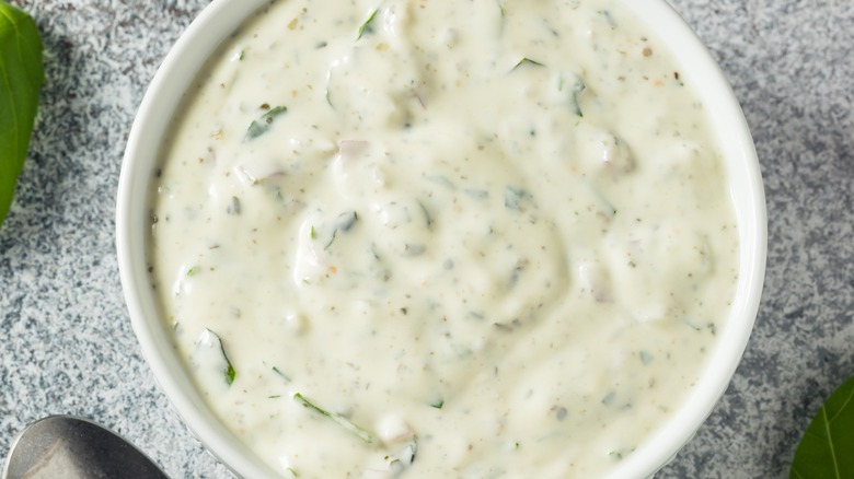 The base ingredients used in most Green Goddess dressings can diverge depending on the cook, individual dietary needs and preferences, and the recipe's era (a lot can change in 101 years, including dressings). But this changeable quality is Green Goddess dressing's greatest culinary strength. Green Goddess recipes can easily switch between pescatarian, vegetarian, or vegan with only a few alterations. The oldest recipe, for instance, calls for mayonnaise and anchovies with vinegar. However, many modern Green Goddess interpretations feature avocados, lemon juice, and sour cream but are less likely to contain anchovies. The only constant in Green Goddess recipe renditions is in the herbs, though even those are up to location, season, and interpretation.