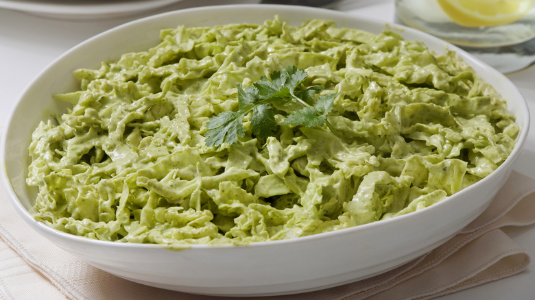 Green Goddess pasta is perhaps the most crowd-pleasing, popular application of the original Green Goddess dressing. This rich, carby, and filling dish is the perfect place to include all those fresh herbs and let their lighter qualities as ingredients shine. "Besides using it as a dressing, a cream, or a hummus, I think you can use those flavors and that kind of creamy idea in a lot of different things. Maybe omit the avocado... and use the same herbs and lemon and maybe the anchovy (if you eat anchovy, but if not leave it out) to a pasta — why not? Yeah, I think that would be awesome," added Reicher.