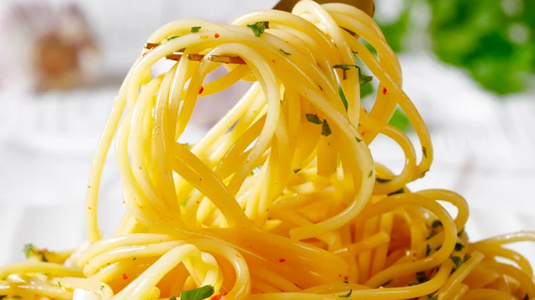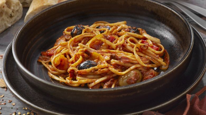 One of the popular ways to eat anchovies is with pasta, and there are a number of anchovy pasta recipes, both traditional Italian, and some non-traditional ones. If you want to give this combo a try but don't know how to approach it, a traditional Italian dish like spaghetti alla puttanesca is a good place to start. While some puttanesca recipes use canned tuna (which is also delicious), using canned anchovies is truer to the authentic recipe. The combination of anchovy, tomato sauce, capers, garlic, and olives work beautifully together, all bringing in loads of flavor so it doesn't taste overly fishy but still has a delicious seafood flavor.