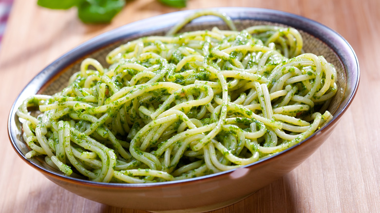 People who have made their own pesto from scratch can attest to how much better it is than store-bought pesto. It's undeniably fresher and zestier. The best thing about making your own is that you can play around with ingredients and customize the sauce to your liking. This is where canned anchovies come in — just a few little anchovy fillets mixed into your pesto will make it instantly more flavorful. It's an obvious addition to traditional pestos which usually use salty, savory cheese like pecorino and parmesan. Anchovies will serve this exact purpose, given they have a strong salt and umami flavor too.