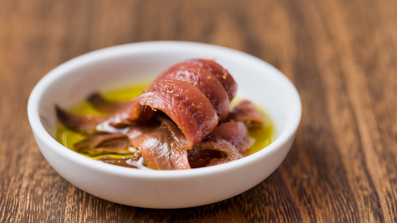 Anchovies are one of the most polarizing foods out there. When it comes to this funky, fishy ingredient, people either love them or hate them. While you might be most familiar with anchovies as a pizza topping or in a traditional Caesar salad, this ingredient is often a recipe's best-kept secret, used to deepen the meal's flavor. Adding a salty, umami-packed hit, there are many dishes you might not even realize have anchovies in them, like beef stew, broth, pasta sauce, or even chili.