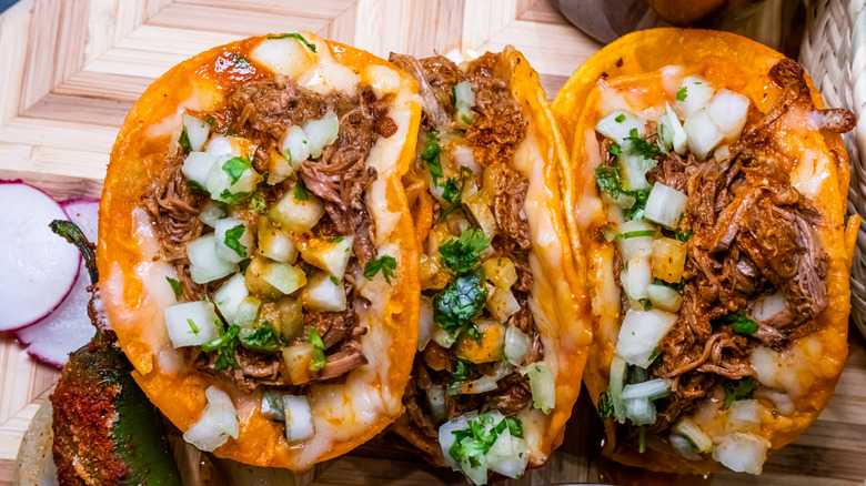 Ready to upgrade taco night? We have a nifty food hack to make quick and easy keto-friendly taco shells: crispy cheese shells. You can use these cheese shells with almost any of Tasting Table's 19 best taco recipes. To make these upgraded taco shells, you only need some shredded cheese, like sharp cheddar or a Mexican blend. To learn about different options, check out our explanation of 35 types of cheeses.