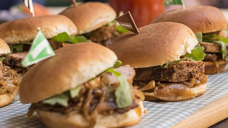 When it comes to feeding a crowd, sliders are one of the best options out there. The mini sandwiches are not only fun to eat and easy to make look decorative and inviting, but they're not too filling. In other words, your guests will still have plenty of room to enjoy all of the side options and desserts that you have prepared. Plus, sliders are super versatile — they don't just refer to small burgers. You can fill them up with anything that you want, from chicken to pork, or even something vegetarian.