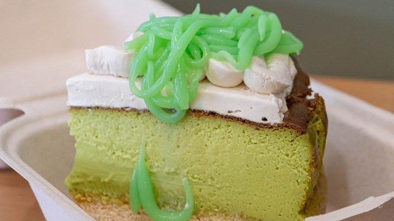 Resembling a clew of atomic worms, it's easy to see why cendol would be a worthy addition to your next Halloween spread, but it has the potential to be a spectacular garnish for baking all year round. Besides, it's naturally vegan and gluten-free. Level it up as ais kacang (loaded with corn, red beans, milk tea, syrup, peanuts, and tapioca pearls), or transform it as Lau has done in her cendol cheesecake (pictured) where a coconut-pandan filling sits on a base of digestive, topped with whipped coconut with a lick of gula melaka and the pièce-de-résistance: a generous handful of those neon squiggles.