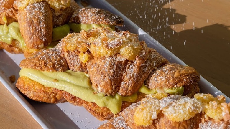 There is a massively popular iteration in the form of a golden brown jam called kaya. If you haven't started a day with a slick of butter and kaya on hot toast or a croissant, you're missing out. Popular in Singapore and Malaysia, kaya is made from coconut milk or cream, sugar, and eggs blended into a caramel. Nyonya kaya is greener thanks to infusing the eggs with pandan, while Hainanese kaya is brown. Both are thick and moreish, and you'll definitely consider ditching the toast entirely and just going at it with a spoon.