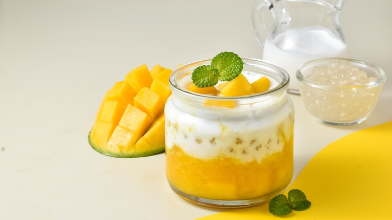 A surprising Southeast Asian go-to (given the rise and fall of tapioca pudding in the U.S.) is mango-coconut tapioca pudding. Again, tapioca and sago are different beasts, but they share similar gelatinous properties that work well in pudding, and the terms are used interchangeably. Mango sago originated in Hong Kong, but it's become so popular throughout Southeast Asia that it's now a firm part of the local culinary scene.