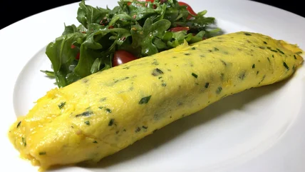 There are hundreds of ways to prepare the humble egg, but none are more simply elegant than the French-style omelet. This is not your average American diner's half-moon-shaped plate of firmly cooked eggs stuffed with typical omelet fillings like meats and vegetables. A French omelet is pale yellow, light textured, almost melt-in-your-mouth smooth. The flavor of the egg should be the main taste. A dash of bright green herbs and possibly a sprinkle of diced vegetables, cheese, or meat can be added, but any more than that would ruin the mouthfeel and, worse, distract from the main ingredient.