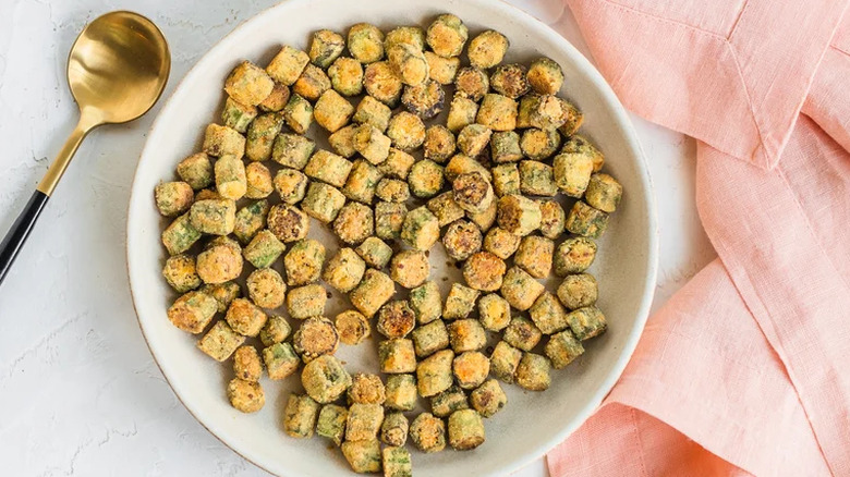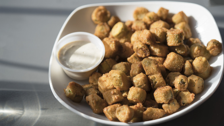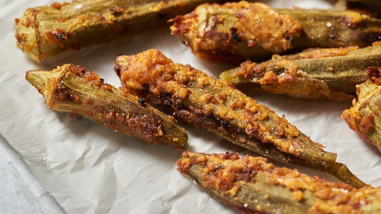Among these dishes is deep-fried okra, arguably one of the most popular ways to eat it. Of course, deep-frying makes everything tastier, but with okra, it's a genius technique to reduce sliminess and give this vegetable — which is ordinarily soft after cooking — a crispy texture.