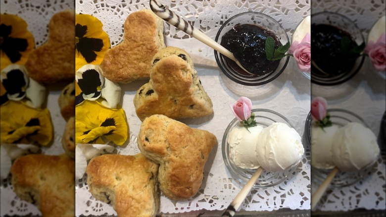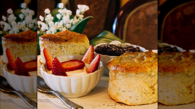 The bites are standard for British afternoon tea, but the charming atmosphere, simple options, and reasonable price make this a solid choice for an afternoon tea. If you book in advance, you can even request a psychic reading to pair with your tea experience — some tea leaf reading with your tea. Freshly baked scones are common at tea time, and the ones at Ye Old King's Head come with Devonshire cream, jam, and fresh strawberries and are perfectly crumbly and subtly sweet. Be sure to check in advance what sandwiches and desserts are offered alongside afternoon tea so you're not surprised on the day.