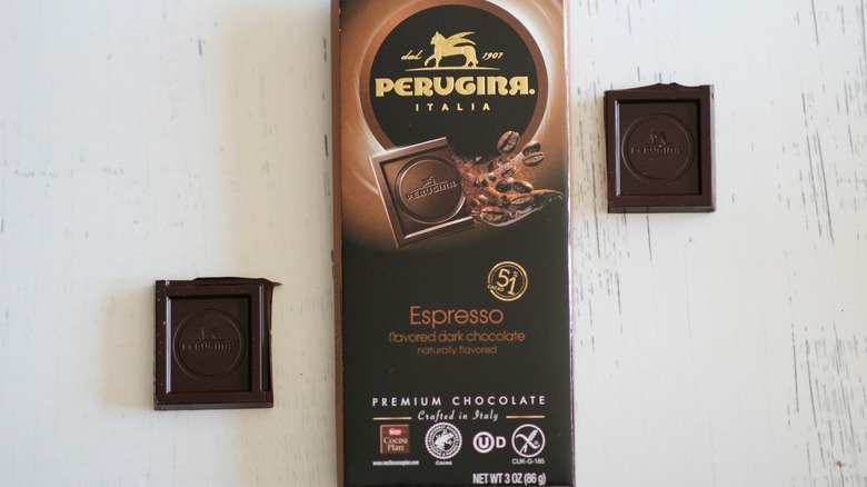Perugina's Dark Chocolate Espresso bar had a subtle aroma of espresso, which was very pleasant and mild. When I bit into the chocolate, I quickly noticed that the espresso flavor faded into a dark chocolate that was clearly dark but wasn't as heavy as the other brands I sampled. Every soft chocolate bite was juxtaposed with the sound of crunching espresso beans, but I quickly realized that there were no whole beans in this bar.