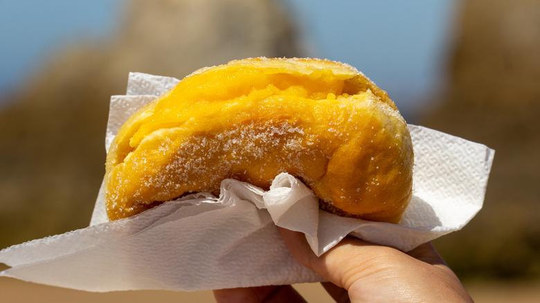 When you think of beach snacks, what comes to mind? Probably ice cream, fresh fruit, and perhaps even hot dogs. Donuts likely don't make the list — unless you happen to be in Portugal. One of the country's favorite seaside treats is bola de Berlim, a hole-less, deep-fried donut filled with egg custard often sold by street vendors.