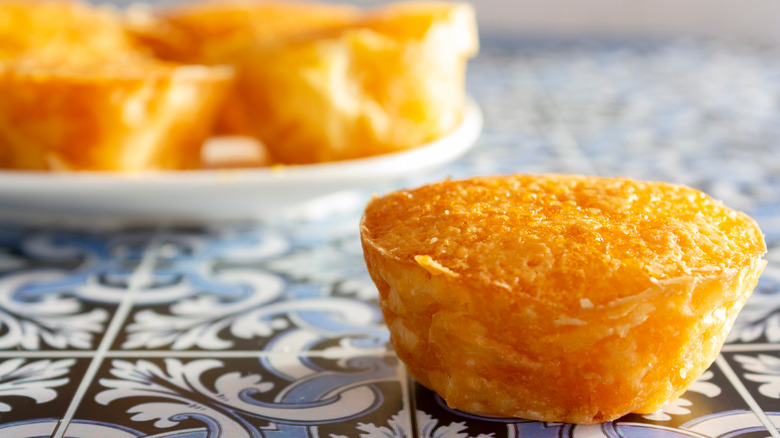 While the spelling might throw you off, "queque," pronounced "ke-ki," serves as Portugal's version of muffins. But you wouldn't know that looking at them. Instead of the domed, mushroom-like shape of muffins in other countries, Portuguese queques have a smaller, higher dome and look more like a crude rendition of suns or flowers. They're flavored simply, reminiscent of pão-de-ló, the Portuguese sponge cake, but with the crucial addition of butter. This ingredient gives them a dense texture and a distinct creamy, slightly salty taste. You'll often find a version with walnuts, too.