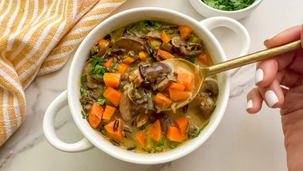 Now, let's talk about wild rice. It's not your average rice — it's nuttier, chewier, and packed with a distinct earthy flavor that adds depth to any dish. Plus, it's loaded with nutrients like protein and fiber, making it a wholesome choice for your meal while offering up a convenient way to switch things up from classic white or brown rice. "Not only is this soup delicious but it's also perfect for meal prep," wellness coach and recipe developer Miriam Hahn says. "You can make a pot over the weekend and then you've got yourself a tasty lunch or dinner option ready to go for the week ahead."
