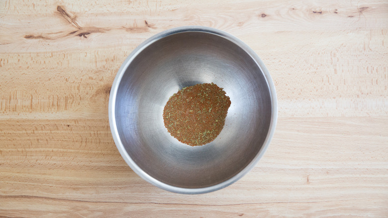 - To make the homemade bay blend, place the celery salt, bay leaves, paprika, nutmeg, cloves, and cinnamon in a large bowl and stir well to mix.