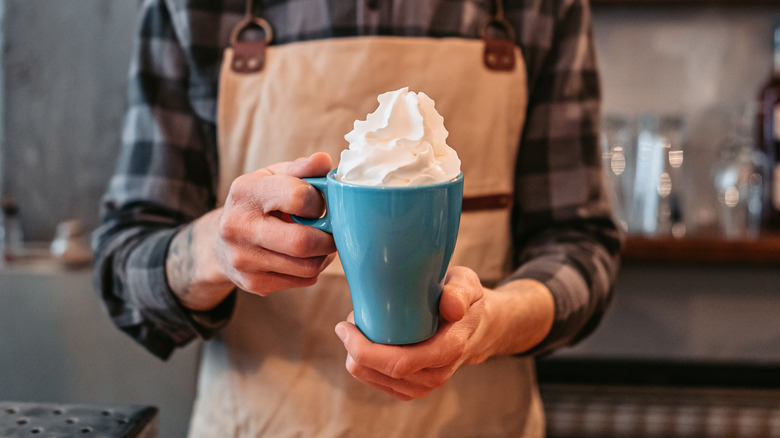 Another useful tip? Always shake your can of whipped cream before use. This will ensure that the contents of the can (cream, sugar, and stabilizers) are mixed well, creating a sumptuously fluffy squirt of the good stuff. Hold your can horizontally and rinse the nozzle under a hot faucet to remove any cream accumulated at the tip before you return it to the fridge. This way your whipped cream will be free from blockages and ready to go the next time you want to use it. If you want to make your own instant whipped cream to top drinks and desserts without relying on store-bought options, try using a whipped cream canister.