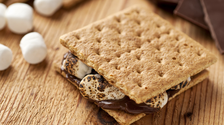 If you're willing to add a fourth ingredient, then there are a few ways that you can further customize these s'more cookies. For example, there's a surprising ingredient that you should be adding to your traditional s'mores that will also work well in these cookies: peanut butter. To do this, you can mix peanut butter into the melted chocolate before adding the cereal and marshmallows. Or, another route to a nutty infusion, would be to mix in chopped peanuts — or any nut of your choosing — and mix that directly into the melted chocolate. If you don't like the idea of adding a nut component but still want something extra in your s'more cookies, then you may like adding chopped pieces of fruit — such as strawberries or blackberries — to the chocolate to bring in some fresh and bright sweetness to the rich cookies.