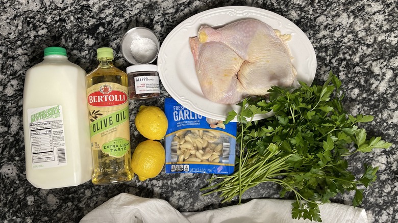 Gather the ingredients for the buttermilk-baked chicken with chimichurri