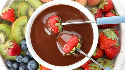 Couverture is to chocolate dips what arabica is to coffee: the best quality to work with. It's what pastry chefs reach for when making high-quality desserts like truffles since it's the ideal chocolate type for tempering. All its goodness melts down to two things: how it's made and its composition. Since all chocolates contain cocoa butter and cocoa solids, what distinguishes couverture is its processing that gives extremely finely ground cocoa solids — that, and its high cocoa butter amount that exceeds that of baking and eating chocolates.