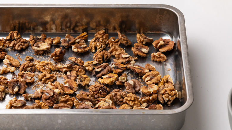 Walnuts are earthy and mild, with a bitterness that can occasionally be looked past. They taste best when paired alongside earthy ingredients with some sweetness for a balanced flavor — think kale and roasted beet salads or cinnamon banana walnut smoothies. However, walnuts can also bring a delectable sort of depth to pasta sauces. We're no strangers to nutty pasta; in hazelnut cream pasta, the nuts bring a cozy element to the noodles, and walnuts can do the same. When toasted, the heat coaxes the natural oils out of walnuts, causing them to abandon their bitterness and take on a deeper, richer taste.