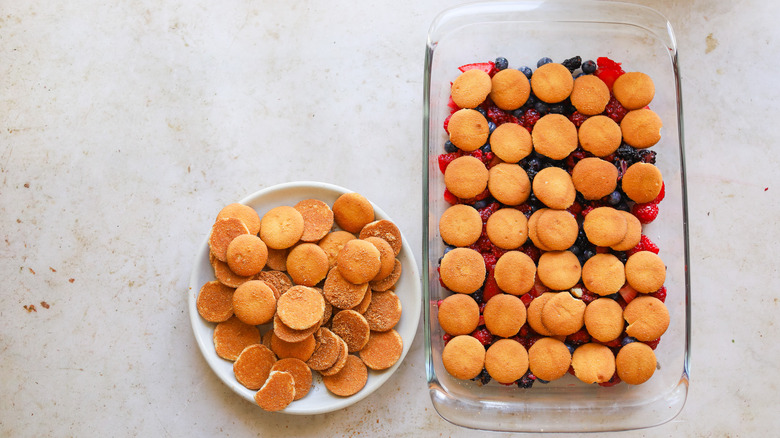 If you need an easy swap for vanilla wafers in this berry pudding recipe, there are several great choices that will work depending on the texture and flavor you desire. Graham crackers are a popular choice and offer a sweet and slightly honeyed taste that goes well with berries. For a nuttier flavor, you might consider almond cookies or biscotti, which perfectly complement the ripe berries, and also add a delightful crunch because they won't soften quite as much.