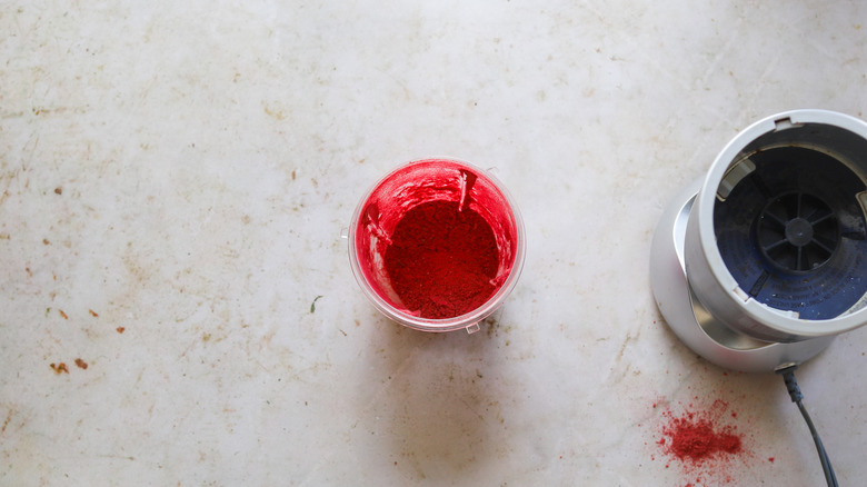 - In a blender, grind the freeze-dried berries to a fine powder.