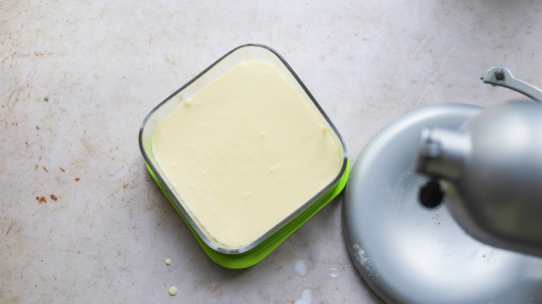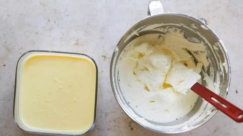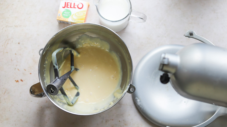 - Slowly add the sweetened condensed milk until fully incorporated.