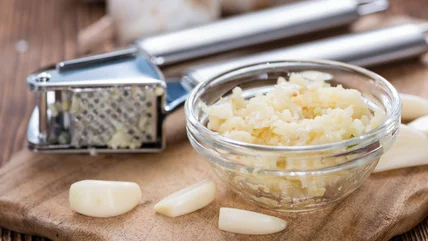 Stop the garlic presses! You may be doing it wrong. If you like garlic — no, if you "clove" it — then you need to be sure you're getting the most out of each and every piece. First things first: Why press garlic? To get the most impactful and pungent flavor, breaking up the cells in a clove of garlic (also known in Latin as Allium sativum) releases the chemical allicin, which gives garlic its distinctive smell and provides a variety of cardiovascular health benefits. Additionally, garlic tastes great as a Cheesy Roasted Garlic Soup, a Sticky Garlic Cauliflower Wings side dish, a Savory Garlic Cream Cheese spread, and so much more! The garlic press is a super useful kitchen gadget that can be both a time-saver and a flavor enhancer. It might seem intimidating at first crush, but once you start, it'll be tough to put down. These tips will help make the process of pulverizing garlic even more efficient, yielding impressive and delicious results.