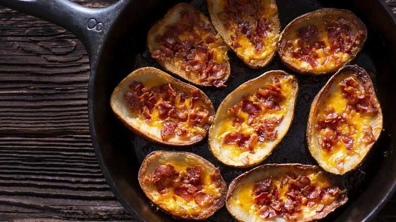 Some folks may question the appetizer's origin, but TGI Fridays has never hesitated to claim ownership, notably posting so on its official TGI Fridays X account. Even if TGI Fridays didn't directly invent potato skins, the chain restaurant has definitely helped put the savvy appetizer on the American map. Since its 1970s uprise, potato skins have become part of the classic American appetizer spread, alongside deep-fried favorites like mozzarella sticks and jalapeño poppers, which, coincidentally, TGI Fridays also serves packaged in the freezer aisle.