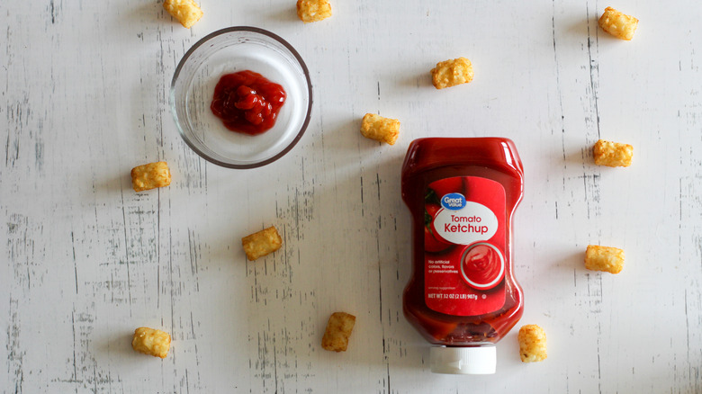 I sampled each ketchup first by the spoonful to assess the flavor on its own, before dipping into it with a tater tot. I chose this tasting vehicle because it has a rather neutral flavor, without any spicy or meaty undertones that would skew the ketchup's profile. I ranked ketchup brands with well-rounded sweetness, balanced acidity, and high ease of dipping at the top of this list. I also factored in the overall value of the product to consider if the extra cost was worth the experience of eating it.