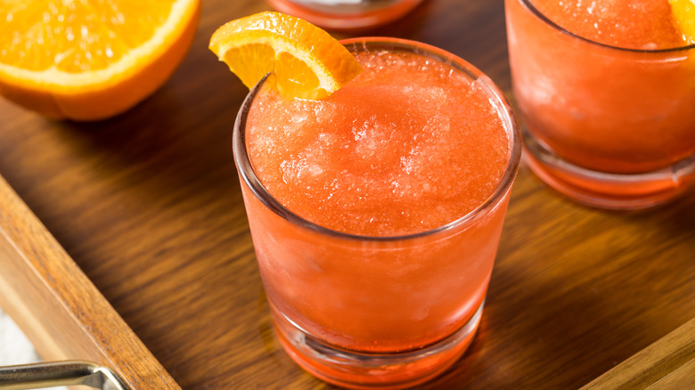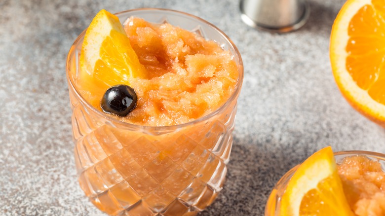 Even if the flavor is the main attraction, a soupy texture can ruin an otherwise delicious drink. Goldstein recommends "using ingredients like wine, liqueurs, and creams." That way, you're more likely to get a consistently creamy texture throughout, and the drink won't be too strong. Our creamy frozen watermelon cocktail fits the bill perfectly. When asked what his favorite flavor pairings were for frozen cocktails, Goldstein said, "It's all very subjective ... but a few of my personal favorites are watermelon and rosé wine, orange and mezcal, and coffee and rum."