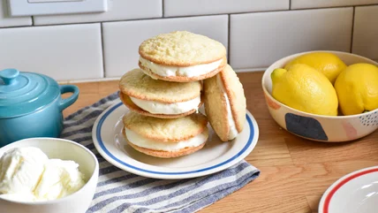 This no-fuss ice cream sandwich recipe uses store-bought vanilla ice cream mixed with lemon zest and soft lemony sugar cookies for a perfect summertime treat.