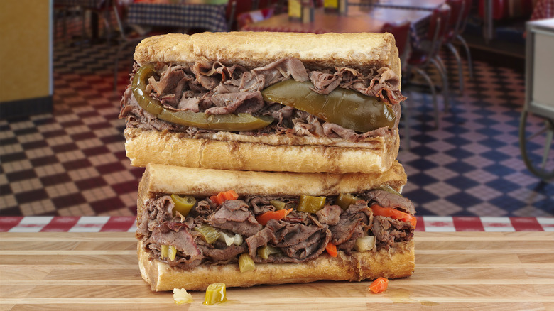 The creative combination boasts the flaky, buttery crust that Lou Malnati's is famous for along with vine ripened tomatoes, Wisconsin mozzarella cheese, and Portillo's homemade, slow-roasted Italian beef. True to Chicago-style pizza, you can choose from a sweet pepper or hot giardiniera topping, the latter of which includes a mixture of spicy, pickled veggies. "With flavorful beef that has been slow roasted for four hours, mouthwatering gravy, and the option to enjoy it with sweet or hot peppers, our Italian Beef sandwiches are quintessential Windy City cuisine," said Nick Scarpino, Portillo's Chief Marketing Officer, in a press release.