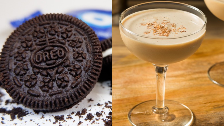 The brandy Alexander is a bit of an old-fashioned cocktail and a take on the still older cocktail, the Alexander. The brandy Alexander is retro, not for the lactose intolerant among us, and deliciously simple to craft, consisting of only cognac, dark creme de cacao, cream, and nutmeg shaved on top. Creamy and dairy-forward with just a pinch of warming spice, the brandy Alexander is the ultimate boozy alternative to your typical Oreo and milk ritual. "I love the high-low pairing of an Oreo and a brandy Alexander. A very creamy cocktail to match the creamy Oreo filling. Plus," adds Amelia Jacobsen. "It's the perfect excuse to dunk."