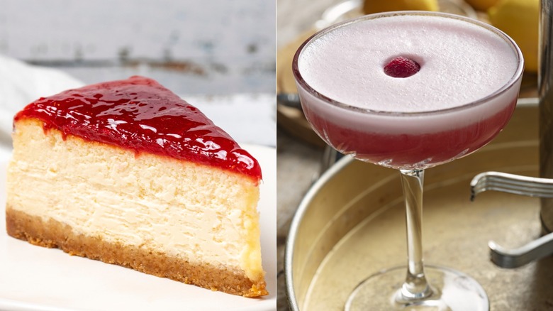 Martinis are one of the most experimented-upon cocktails in the history of mixology, so upgrading a martini to make it raspberry-forward can be as simple as playing around with raspberry juice or garnishing with raspberries. You can also use it more as a replacement for the drizzle. "Raspberry in a martini will almost act as a sauce or topping for the slice of vanilla cheesecake," Amelia Jacobsen tells us.