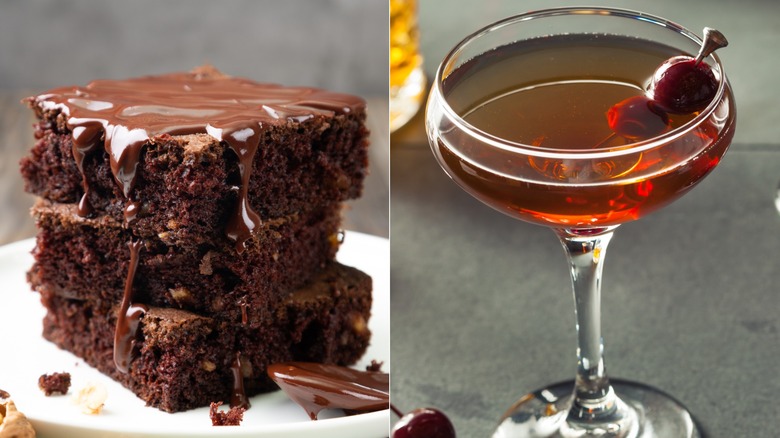 Per Amelia Jacobsen, it's the dormant note of caramel in Averna amaro that makes it the perfect pairing (even by itself, neat or on the rocks), with walnut brownies. The black Manhattan also benefits by folding in orange bitters. This mix of rich, dark liquor, light spice and citrus, and chocolate nuttiness makes for a deeply indulgent pairing of classic dessert and elevated cocktail.