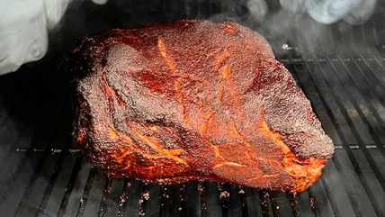 On a gas grill, set one of the two burners to high and the other to low (or off), which are your direct and indirect heat sources, respectively. Just like you would with a charcoal grill, allow the grill to come up to the appropriate temperatures. Close the lid and smoke your pork shoulders for about one to two hours per pound. Once ready, use the hot zone to sear the pork shoulders for a beautiful charred finish — that's how you achieve the smokiest, juiciest pork shoulder steak on your grill.