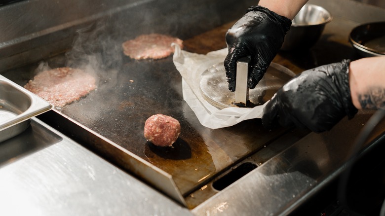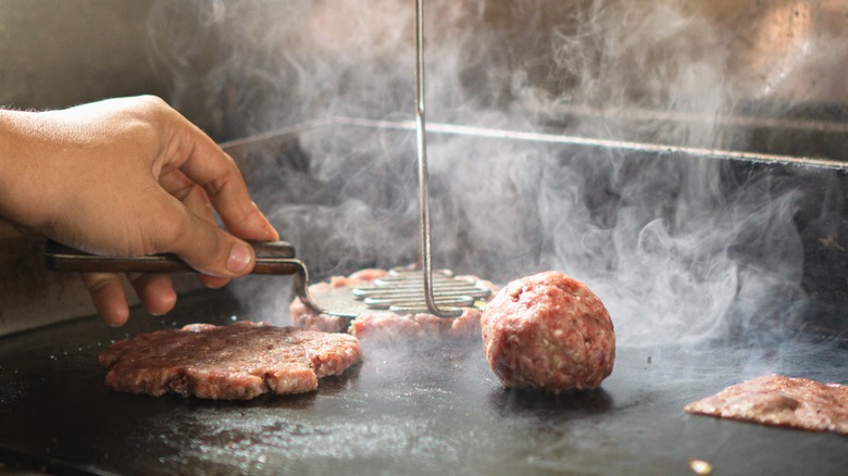 Along with an amazing taste, smash burgers are also an affordable alternative to the average burger spot, which nowadays can cost upwards of 16 dollars. If getting more umami for your bucks sounds exciting, then smash burgers are a delicious detour. But, before you start smashing away, there are some things to consider. Burgers aren't as easy to smash as they appear and often leave beginners scratching their heads. Thankfully, we've teamed with chef Aaron Lopez, the resident grill master at smash-burger-hotspot Love Hour in Los Angeles. Here are some common mistakes everyone makes with smash burgers.