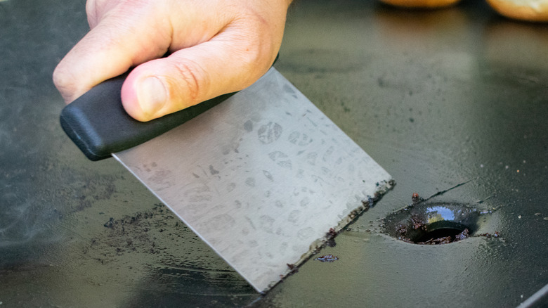 Cleaning your cookware doesn't just apply to making smash burgers but to cooking in general. Granted, there are exceptions to the rule, like reusing grease for flavoring, but in general, always clean before cooking. Aside from being unsanitary, it can impact your burgers in other undesirable ways. Chef Aaron exclaims, "This is just gross. Don't be that guy (or girl), make sure your equipment is clean, always! You can also get those gross black marks (burned grease) on your burger and that will severely affect the taste negatively."