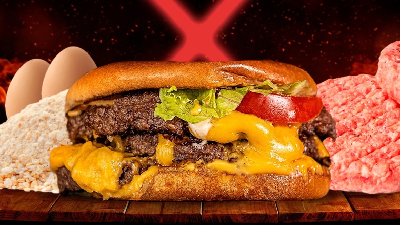Though not traditionally used, breadcrumbs are equally problematic. The coarse and grainy texture will prevent your patty from sticking, thereby messing up the charring process. Breadcrumbs are popularly used to make meatloaf and meatballs light and tender, which is the opposite texture that you want your smash burgers to have. "It's a burger, not meatloaf! No eggs or breadcrumbs EVER!" asserts chef Aaron.