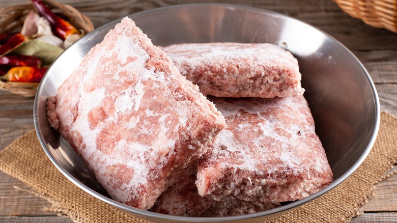 A mistake commonly made when cooking burgers is not allowing frozen ground meat to thaw completely. When stored in freezing temperatures, the water content in meat hardens and expands, creating ice crystal pockets that alter the muscle structure. Thawing causes the ice to melt, thereby loosening the original structure and tenderizing the meat. "This is actually a pro tip. Bringing your meat to room temperature is always the key to properly cooked steaks and burgers," chef Aaron says.