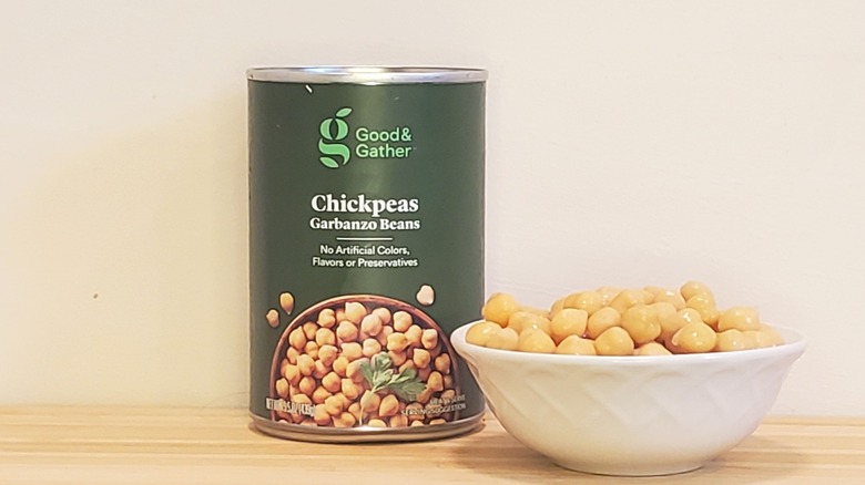 I chose the organic version of Walmart's in-house brand, Great Value, because it was price-comparable to the conventionally grown product. Overall, Great Value offers organic products at a decent price. However, this brand is sometimes hit or miss when it comes to taste. The chickpeas had a passable flavor, with a nice texture — but it wasn't anything extraordinary. The aquafaba was both thick and bland, making it an ideal choice for recipes, like using aquafaba in cocktails.