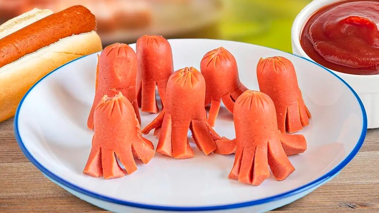 When it comes to hosting a barbecue, it's easy to come up with foods for the adults to indulge in, from grilled meats to all of the best BBQ sides. But, in many cases, you also need to come up with some dishes that the kids (and fun-loving adults) will love, too — and this is where the hot dog octopus comes in. The hot dog octopus is actually exactly what it sounds like: a cooked hot dog that is sliced so that it looks like an octopus.