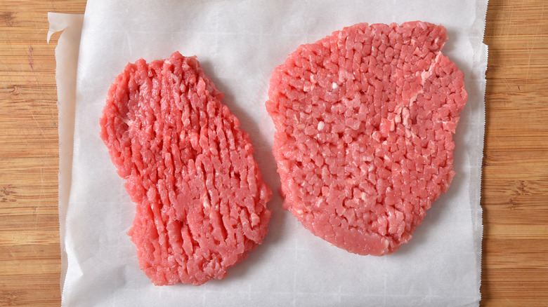 You'll be disappointed when ordering Salisbury steak if you're expecting to slice into a pink, juicy steak and find ground meat instead. Although our definition of steak no longer includes meat pressed into a similar shape, Salisbury steak has the advantage of additional seasoning mixed into the ground meat — some recipes even add eggs, breadcrumbs, and flavorings like Worcestershire sauce, making it more akin to a meatloaf mixture. These ingredients ensure a delicious outcome, no matter what type of ground beef might be in the mix.