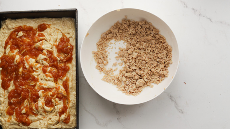 If peaches aren't exactly your favorite fruit, you could swap the peach jam for tangier apricot preserves or even blackberry jam, or really any kind of jam you prefer. For the fall, a spiced apple butter or smooth pumpkin butter would be a cozy and warming treat that goes well with the cinnamon in the streusel topping. In the spring, berries come into season and our palates crave tart and tangy berry flavors. Strawberry jam, blueberry jam, or a combination of mixed berries would all be great swaps for the more summery peach jam. All of these fruits work well with cinnamon, though you could choose to branch out in terms of flavorings if you feel creative. Pair spring berries with lemon or orange zest instead of cinnamon for a citrusy tang, or add some nutmeg to the cinnamon for your fall fruit swaps.