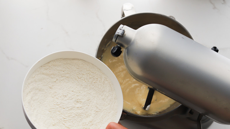 - Follow with the flour mixture, stopping when just combined.