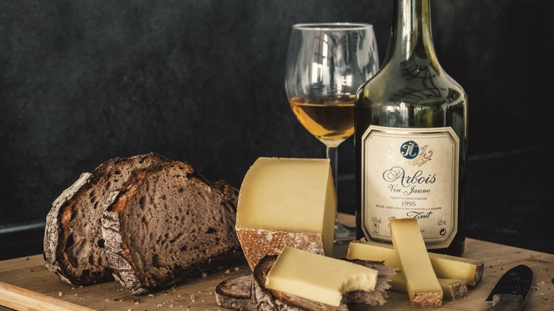 A sip of Vin Jaune is a wild experience because you'll likely question whether it actually is wine that you're drinking. There is a richness to it, yet it's bone dry. With a full body of concentrated flavor, and unexpected notes of toasted nuts, curry, and dried apricot, it almost has a brininess to it matched by sourdough toast.